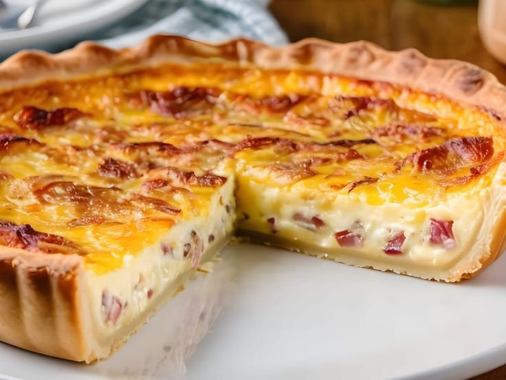Tarte salée, lardons, œufs, crème, fromage