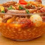 Le cassoulet est un plat traditionnel du Sud-Ouest de la France, composé de haricots blancs mijotés avec des viandes variées comme du canard confit, de la saucisse de Toulouse et du porc (généralement du lard ou des côtes de porc), le tout cuit lentement pour développer des saveurs riches et profondes.